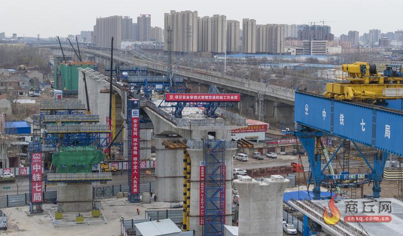 3月1日,位于梁园区平原街道办事处新区社区附近的京雄商高铁(商丘段)项目施工现场(无人机照片)。雄商铁路是我国“八纵八横”高速铁路网的重要组成部分,也是京港台通道的重要组成部分,其建成后将极大地提升我市交通枢纽地位,有力推动经济社会的快速发展,为城市带来新的发展机遇。