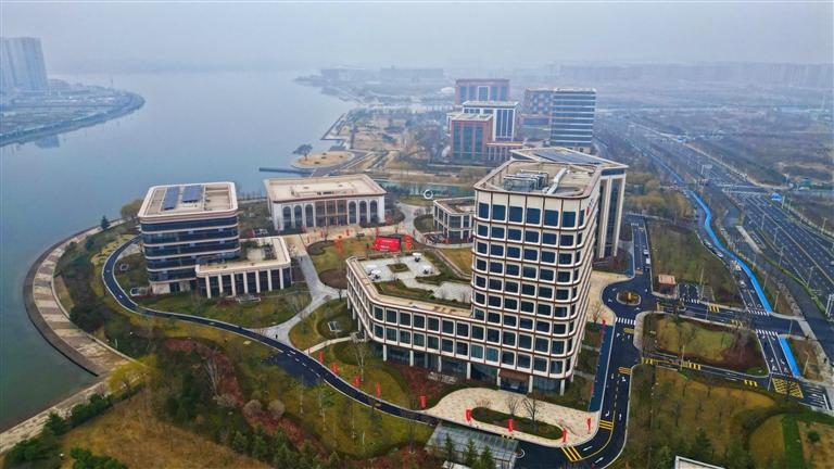 航拍下的郑州北龙湖超聚变研发中心及总部基地项目。本报记者 聂冬晗 摄