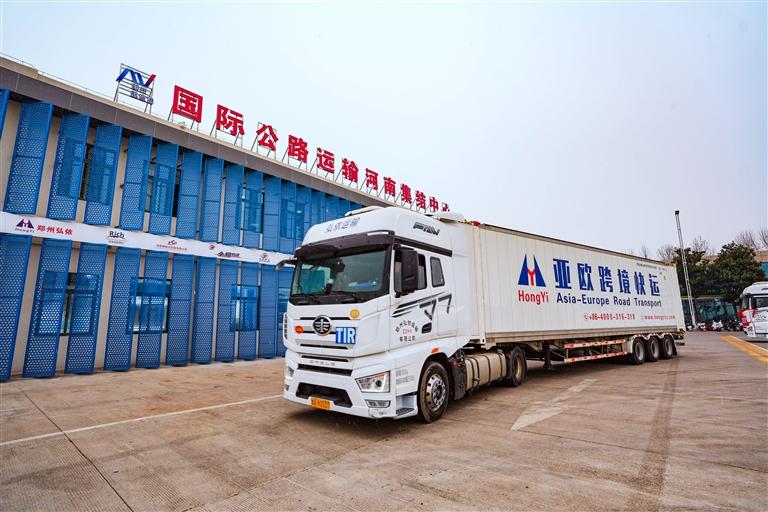 施加关锁、签注证书……经郑州海关所属新郑海关监管,郑州弘依运输有限公司一辆载着汽车零部件的TIR(国际公路运输系统)车辆,离开位于郑州新郑综合保税区的国际公路运输河南集结中心(以下简称“集结中心”),驶向俄罗斯首都莫斯科。