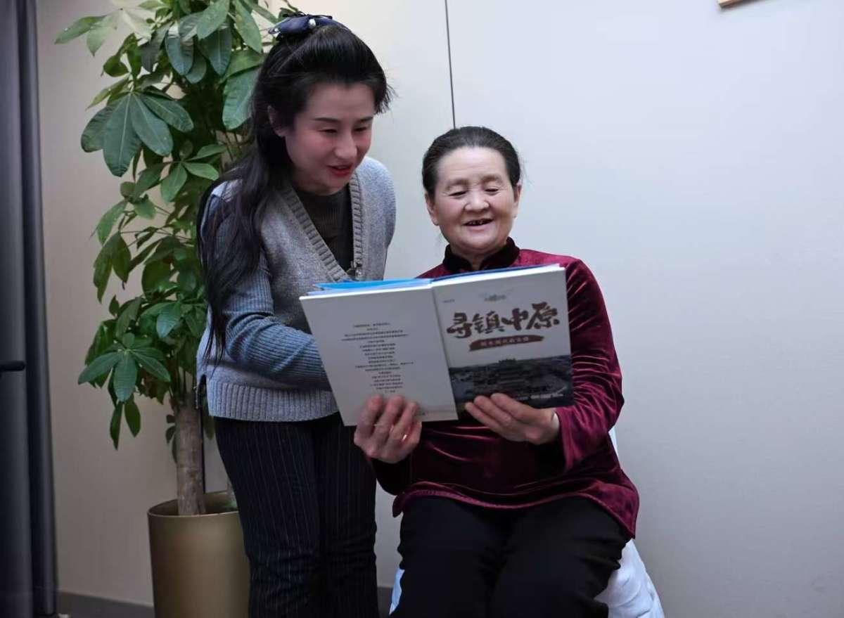 (全国人大代表郭建华在图册中翻看家乡古镇的图片 河南报业全媒体记者 马绍坤 摄影)