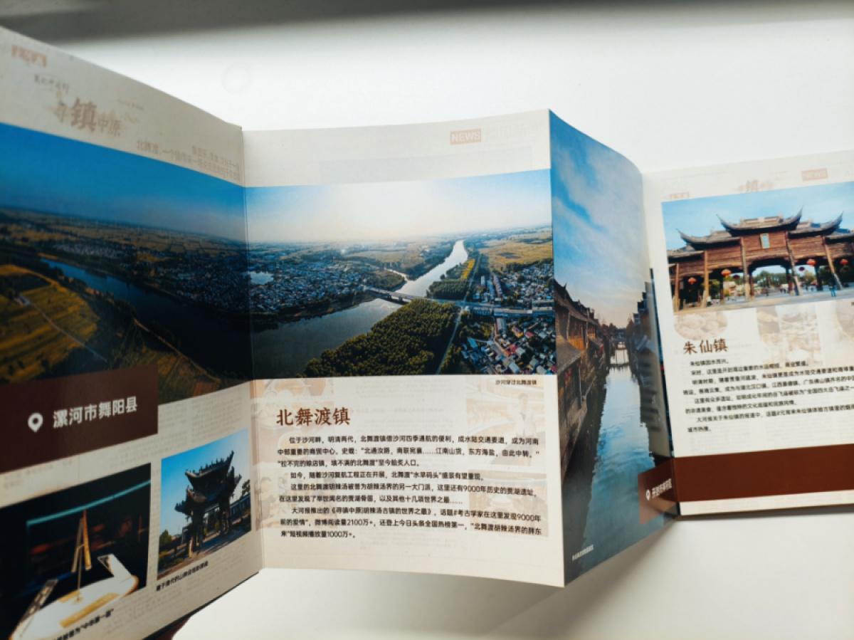 图册分为两个篇章,打开正页,讲述了河南一大批因水而兴的古镇,俯瞰古镇,河流环绕,近了端详,古建精美,人文遗迹丰富,文化气息扑面而来。