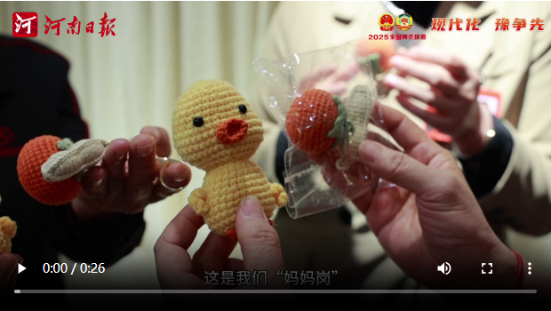 加油“鸭”、好“柿”“花”生……今年两会,全国人大代表于莉从老家汝州带来了一份特殊的三八节礼物——毛线钩织品。