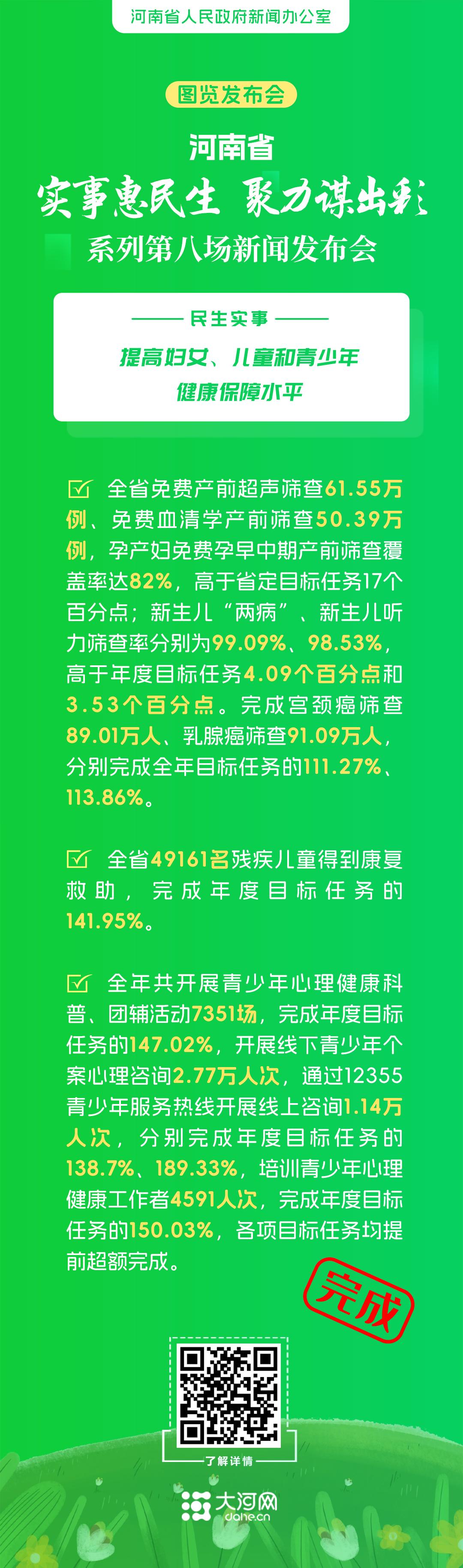 惠及万千家庭 河南超额完成妇女、儿童和青少年健康保障相关民生实事
