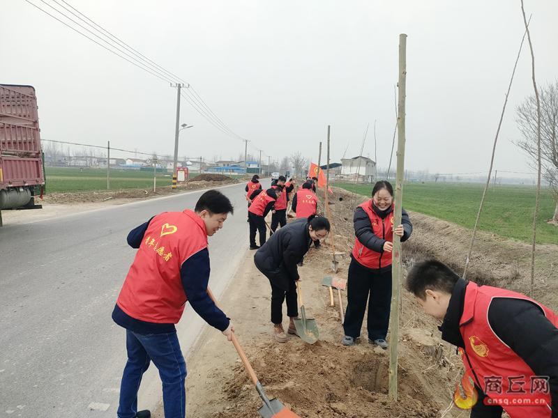 为深入学习贯彻习近平生态文明思想,充分发挥共青团组织在生态文明建设中的引领作用,近日,共青团商丘市委组织机关全体党员干部到睢阳区郭村镇开展春季义务植树活动。活动现场,参与人员热情高涨、干劲十足。大家扶正树苗、挥锹铲土、培土压实、提水浇灌,配合默契,整个义务植树活动现场忙碌而有序。记者 李娅飞 摄