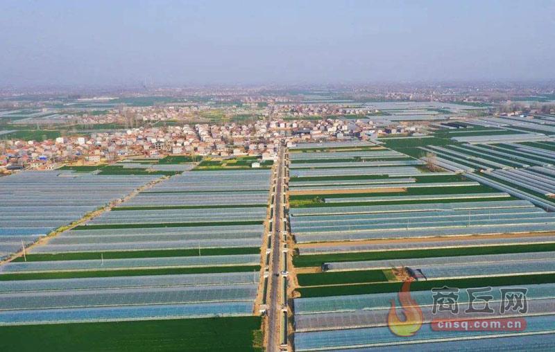 ①:航拍的车站镇秦楼村黄瓜大棚。