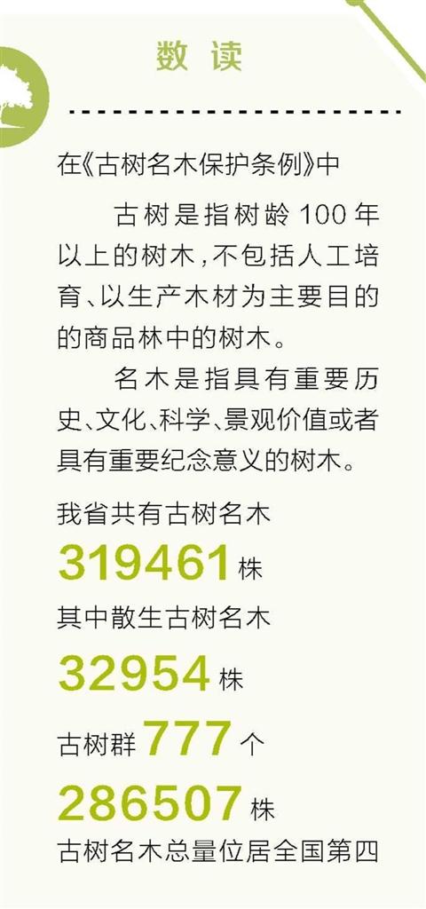 散布山水间的古树名木,以年轮为光阴作证,被称作“绿色国宝”“有生命的文物”。