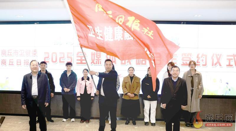 在大家共同见证下,商丘日报社纪委书记苏东锋和商丘市卫生健康委三级调研员张荣兴庄重地签字并交换了《全媒体宣传战略合作框架协议书》,标志着商丘日报社与商丘市卫生健康委员会正式开启深度合作篇章。双方领导共同为商丘日报社卫生健康融媒工作室团队授旗,象征着这支专业队伍将肩负起深入挖掘卫生健康新闻、传播健康知识的重任。