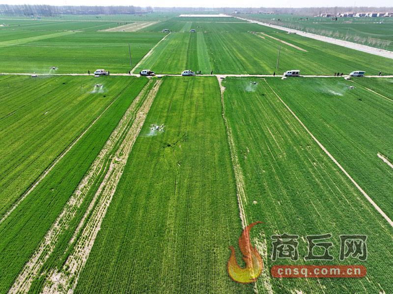 3月17日,在夏邑县桑堌乡高标准农田示范区,伴随着阵阵轰鸣声,一架架无人机腾空而起,在小麦试验田上空盘旋并喷洒蛋白营养液,标志着夏邑县超百万亩小麦单产提升百分之十以上行动正式启动。