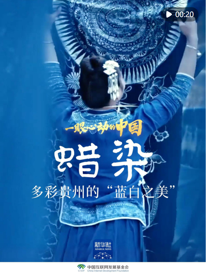 蜡染是用蜡刀蘸熔蜡绘图案于布后以蓝靛浸染
