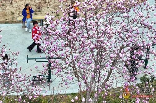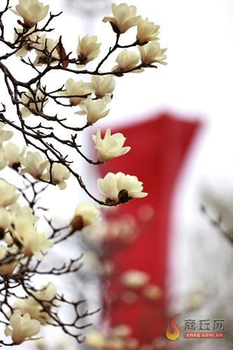 近日,商丘好人主题公园西侧的玉兰花已经盛开。满树高洁典雅的玉兰花端立在枝头,吸引了众多游客前来打卡拍照。