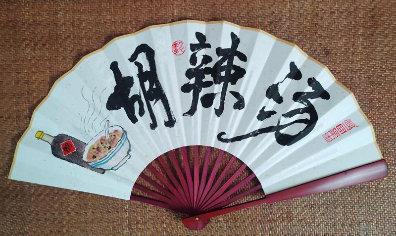 两三天后,一把精美的折扇从南国寄来。打开看,太漂亮了——上书“胡辣汤”三个大字,旁边是一个冒着热气的老瓷碗。