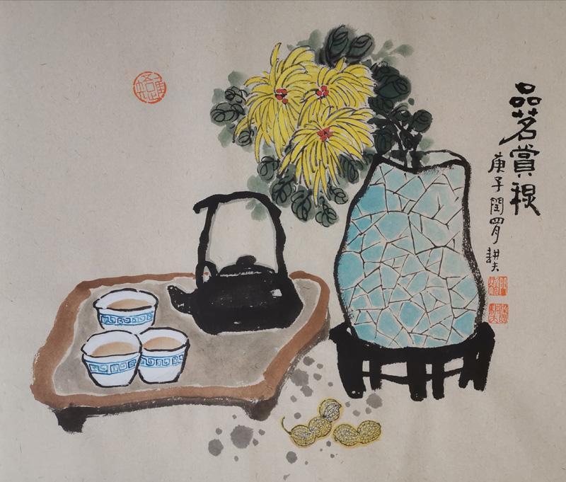 门焕新的艺术创作,是对生活的深刻感悟与提炼。他在大俗的生活场景中挖掘出质朴的美,又在大雅的文人意境中展现出艺术的高度。他用画笔描绘生活、讴歌时代,无论是沾满泥土气息的乡土画作,还是充满诗意的“清供图”,都传递出他对生活的热爱和对艺术的执着追求。在他的作品中,大俗与大雅并非对立,而是相互交融,共同构成了他独特而丰富的艺术世界。