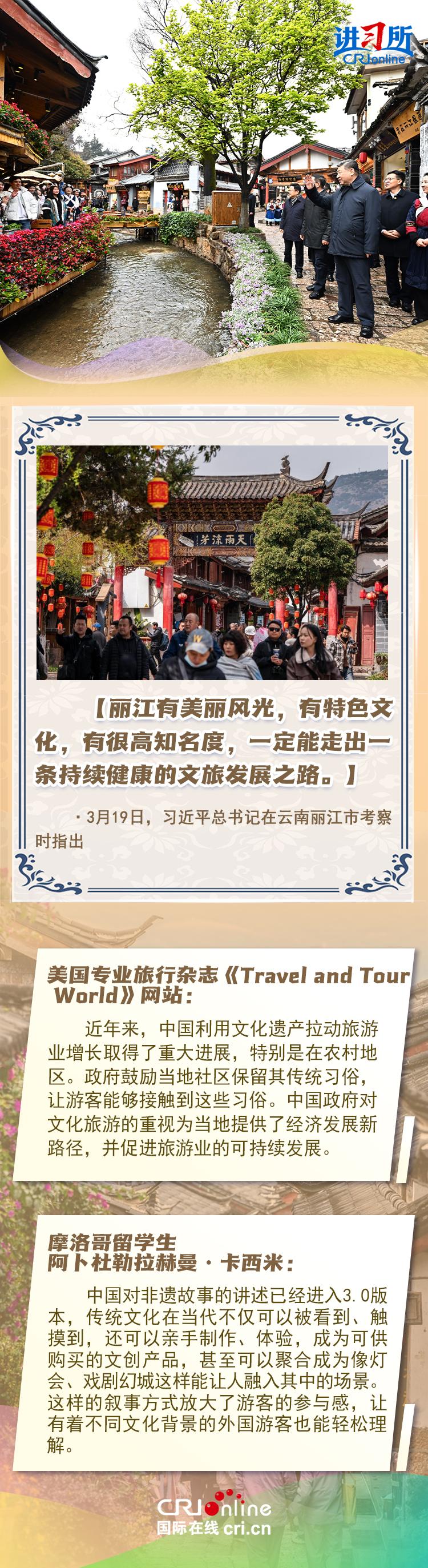 “历史文化遗产不仅生动述说着过去,也深刻影响着当下和未来。”目前,中国列入联合国教科文组织非物质文化遗产项目达到44个,居世界之首,向世人展示出中华优秀传统文化的巨大魅力。而近年来中国持续优化签证政策,“China Travel”让许多国家游客更便捷地来华打卡中国的世界非遗项目,他们看到,作为历史文化遗产保护的典范,中国为全球的遗产保护工作树立了榜样。