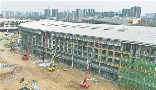 3月24日,无人机拍摄的商丘体育中心二期项目施工现场。该项目位于归德路与北海路交叉口东北角,占地330亩,总建筑面积256230平方米,总投资约12亿元。项目建成后,可同时进行足球、田径、游泳、篮球、羽毛球、乒乓球、网球等多种体育项目的比赛、训练,成为市民健身休闲的新场所。