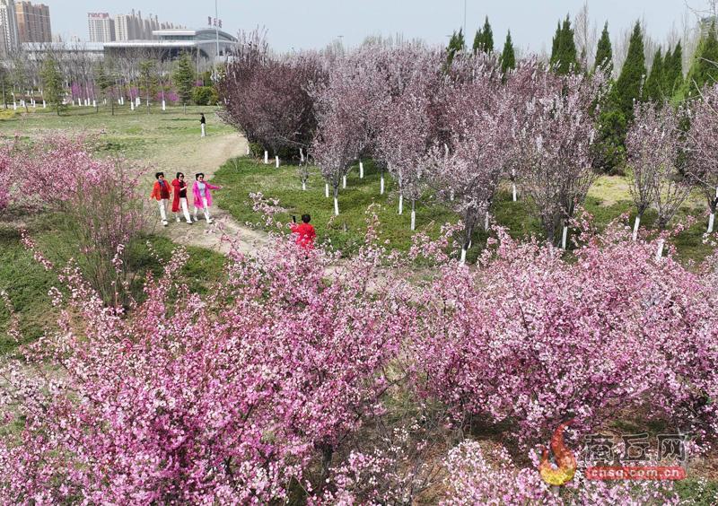 3月26日,市民正在商丘高铁站东侧的公园里游玩。近日,商丘高铁站北广场两侧海棠花盛开,呈现出一幅春意盎然的景象。