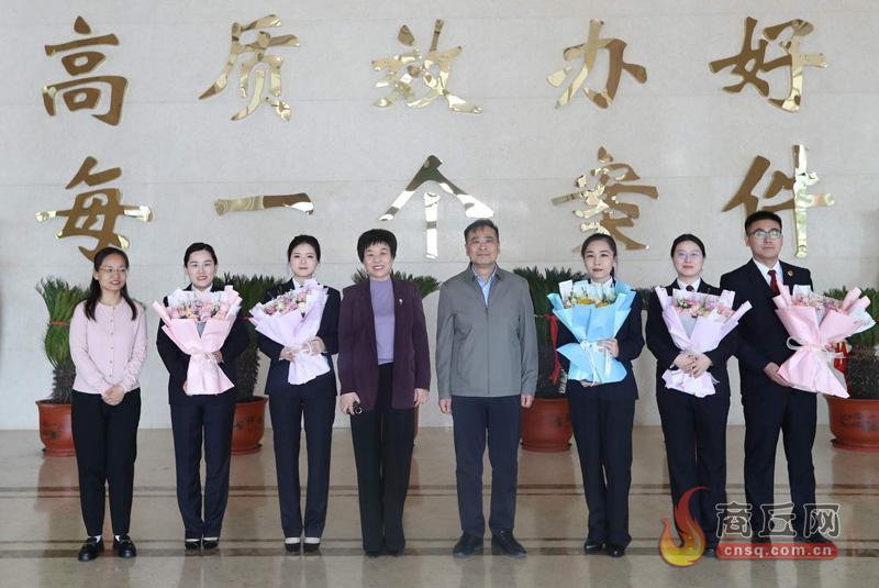 3月26日,市人民检察院党组书记、检察长王建波接见慰问载誉归来的范倩等5名第四届全省未成年人检察业务竞赛参赛选手。