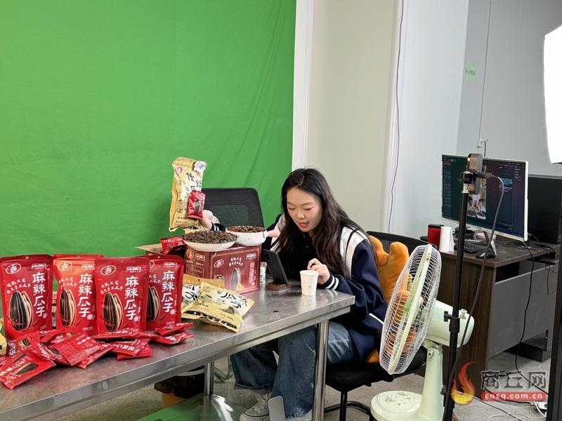 直播人员正在网上销售瓜子。 本报融媒体记者 刘建谠 摄