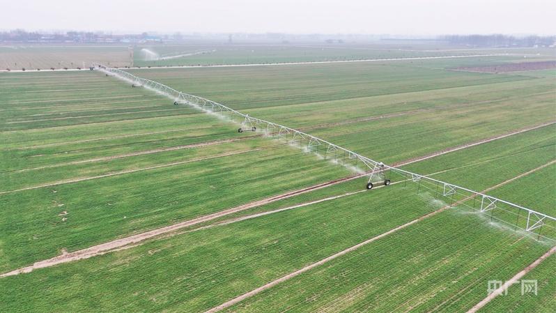 在他身后,智能喷灌系统正精准作业,水雾在阳光下折射出彩虹。在这片高标准农田示范区内,科技元素已深度融入生产环节。“返青水和返青肥的精准施用,直接关系小麦分蘖成穗率。”薛胜军指着智能喷灌系统介绍,以前都是大水漫灌每亩耗水量大。现在多用喷灌、滴灌,减省了好多人力物力。
