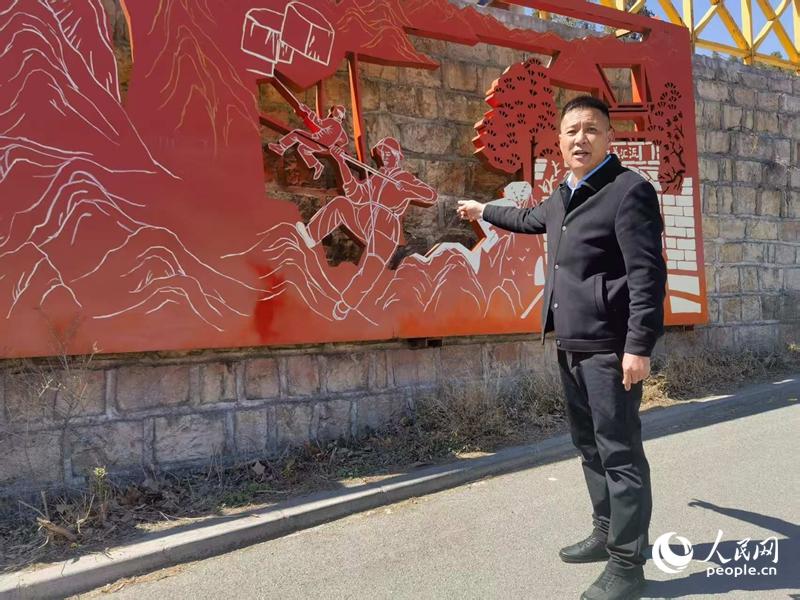 张学义向人民网记者介绍红旗渠的修建历史。人民网记者 尚明桢摄