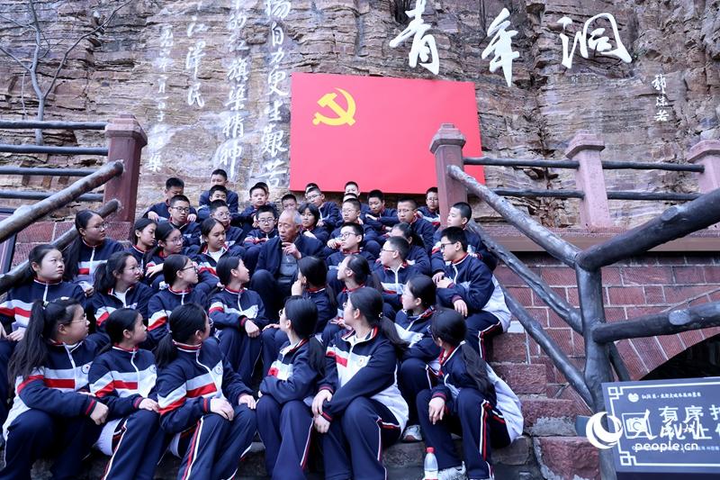 身为红旗渠精神宣讲员,张买江常给孩子们讲红旗渠的故事。人民网 霍亚平摄