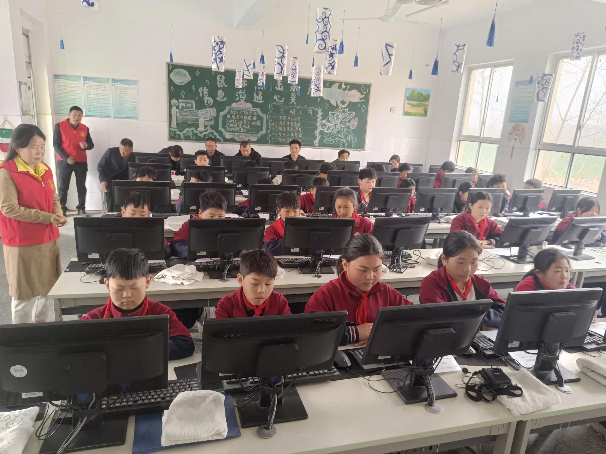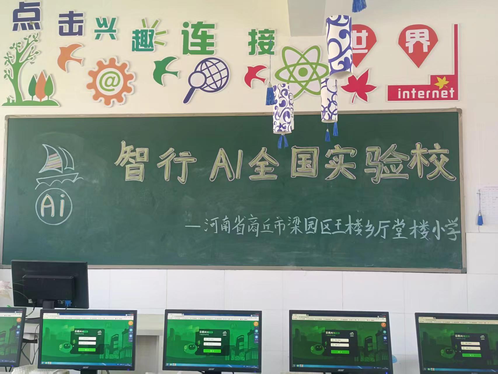 走进活动现场,教室布置得充满科技氛围。黑板上 “智行 AI 全国实验校启动仪式——河南省商丘市梁园区王楼乡厅堂楼小学” 的字样十分醒目。同学们穿着整齐的校服,有序的走进活动现场,端庄的坐在电脑前,眼神中满是期待。