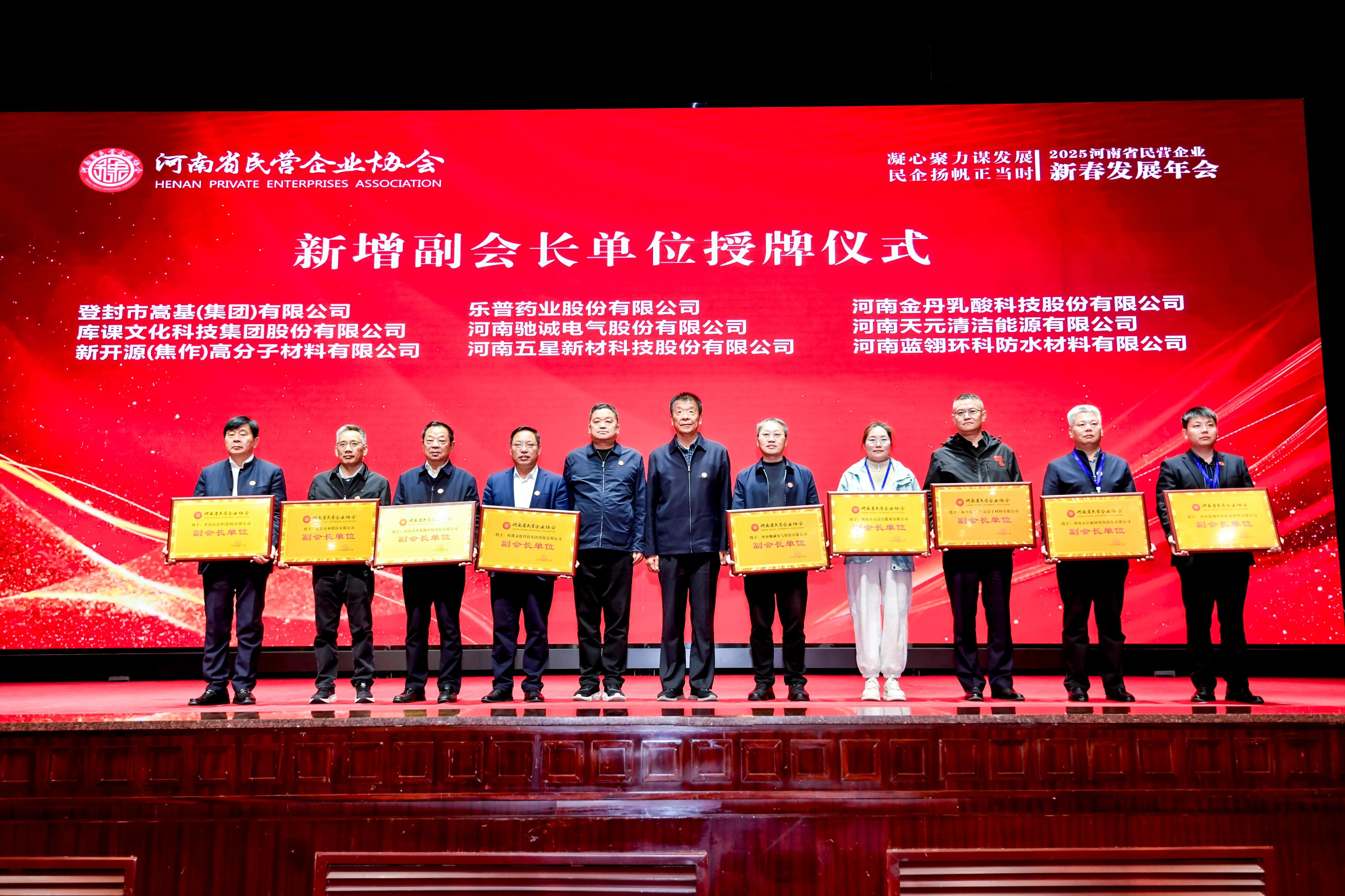 本次大会还举行了河南省民营企业轮值会长交接仪式,龙佰集团董事长和奔流担任协会2025年轮值会长,河南省民营企业协会2024年轮值会长刘兴旭任荣誉会长。同时增补登封市嵩基(集团)有限公司、乐普药业股份有限公司、河南金丹乳酸科技股份有限公司、库课文化科技集团股份有限公司、河南驰诚电气股份有限公司、河南天元清洁能源有限公司、新开源(焦作)高分子材料有限公司、河南五星新材科技股份有限公司、河南蓝翎环科防水材料有限公司为副会长单位。和奔流表示,协会将坚持“党建引领、制度建会、服务兴会、科技强会、文化立会”,认真开展各项工作,为广大会员企业做好服务,为促进我省民营企业做强做优做大贡献力量。