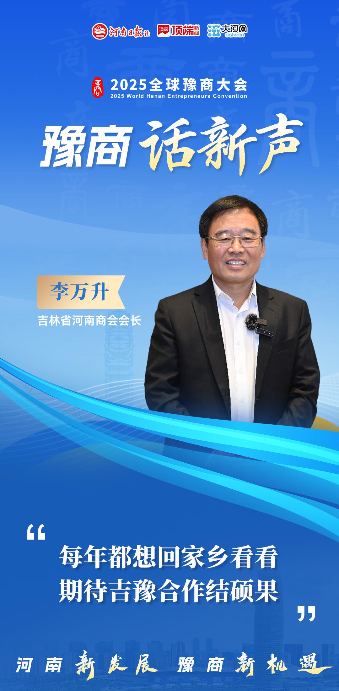 河南是人口大省,在农业、科技、交通等方面都有很大的优势。作为在吉林打拼的河南人,李万升深切感受到两地合作的战略纵深。当黑土地遇见河南粮仓,当东北工业基地对话中原“智”造高地,当长白山的松涛应和黄河的奔腾,这片热土正期待着他们架设资源嫁接的桥梁,碰撞产业升级的火花。