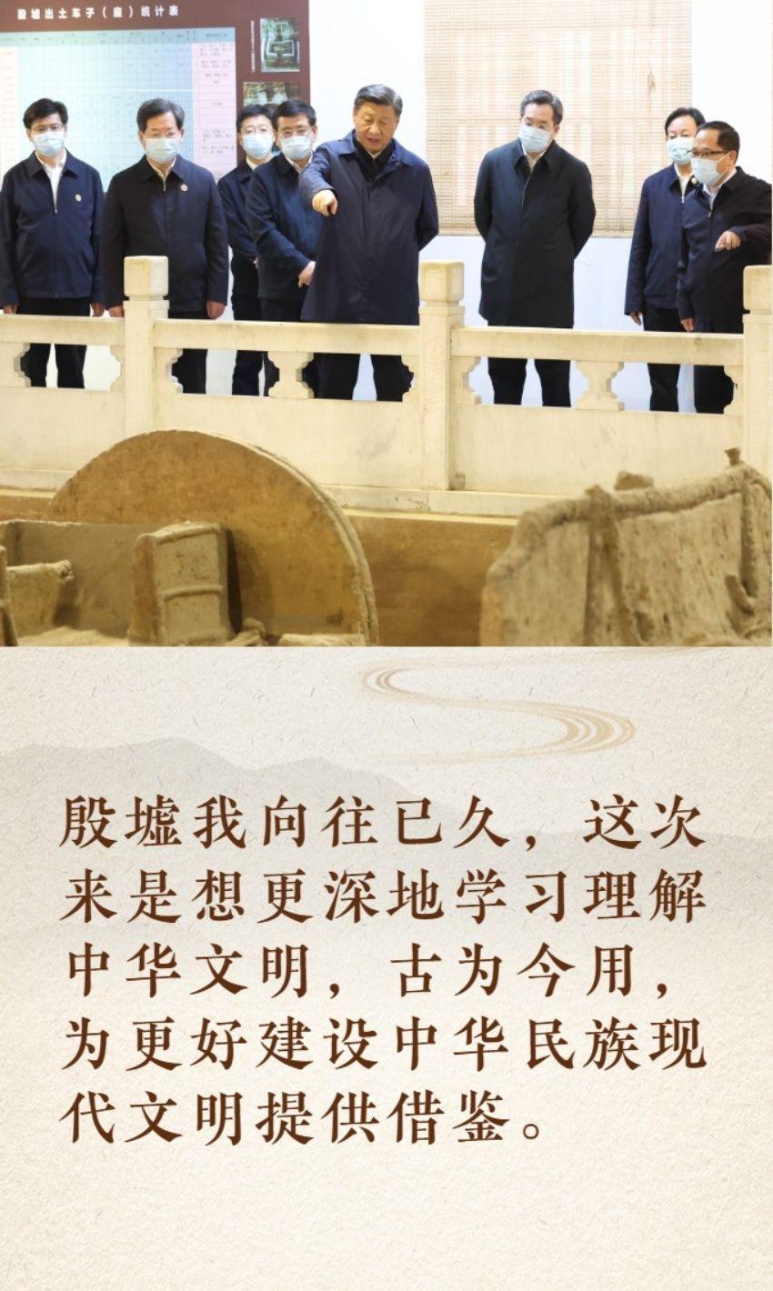在考察殷墟遗址时指出