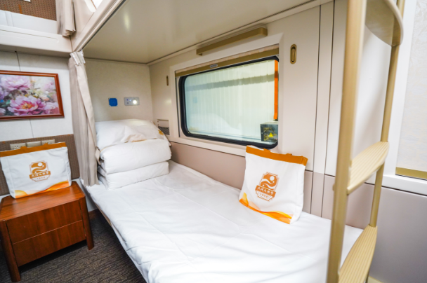 特色旅游列车配有双人包、3人包、4人包等3种类型的14辆软卧车和1辆餐车、1辆多功能车、1辆工作车。其中,双人包的2个单人床可以自由组合,灵活切换标准间和大床房等不同模式;4人包上下铺设隐私拉帘,提高私密性;双人包、3人包设有多功能组合柜、休闲迷你吧等新设施;多功能车集观光、休闲、娱乐于一体,打造了八人茶室、棋牌室、娱乐室三种不同空间,提供卡拉OK、棋牌、品茶聊天等多种服务,让旅客尽享旅途轻松时光。同时,列车包厢实行酒店式管理、管家式服务,由星级主厨烹饪特色美食,安排有一系列互动式文艺活动展示,为旅客打造吃住行一站式全套服务,不断满足旅客多元化出行需求。