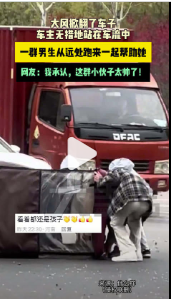 3月27日,河南商丘。大风掀翻了车子,车主无措地站在车流中,一群男生从远处跑来一起帮助她,网友:我承认,这群小伙子太帅了!