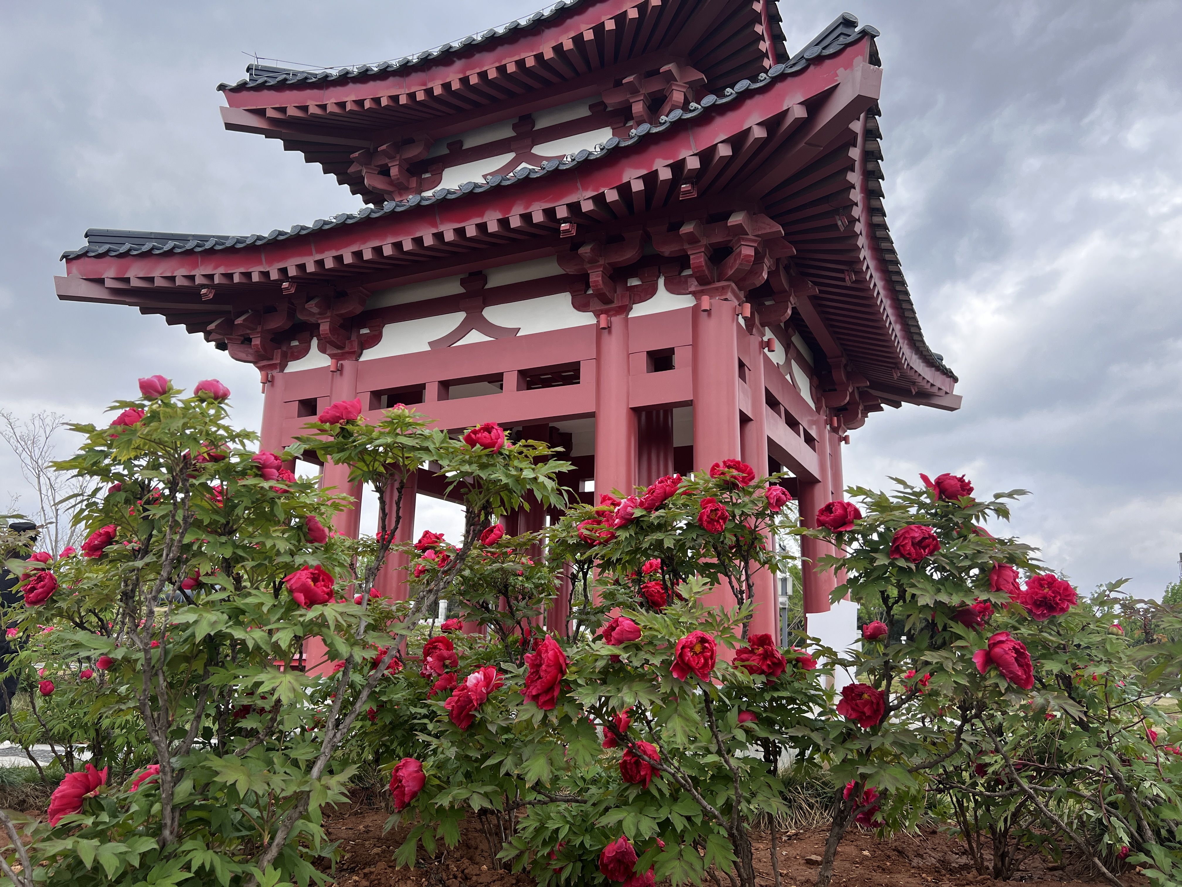 牡丹阁景区位于洛阳城市现代轴线南端,北邻高铁龙门站,西临王城快速路,占地73亩,总建筑面积2万平米,2022年牡丹文化节期间对外试运营,包含户外休闲区域和牡丹阁主楼。馆内以文献资料、历史文物、视频图片、牡丹鲜花等为载体,结合科技手段进行展陈,主要展示牡丹栽培历史、牡丹品种演变、牡丹文物、牡丹产品产业发展等,户外休闲区不仅有金阁、红翠楼、乌龙捧盛等品种牡丹,还有数株百年牡丹供游客观赏。此次户外休闲区对外免费开放后,游客可在园区运营时间(9:00—18:00)内游览。