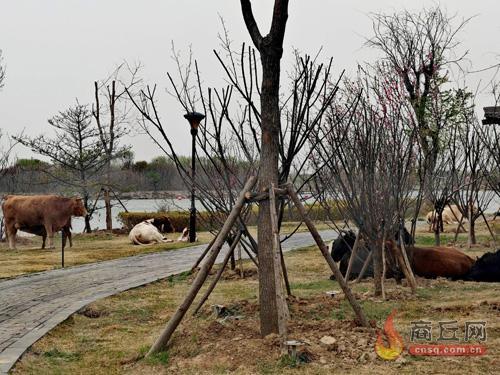 近日,商丘古城景区内出现“野生牛”,这些牛在无人看管的情况下,肆意在绿化带内休憩觅食,不仅存在安全隐患,也破坏了景区形象。本报融媒体记者 邢栋 摄