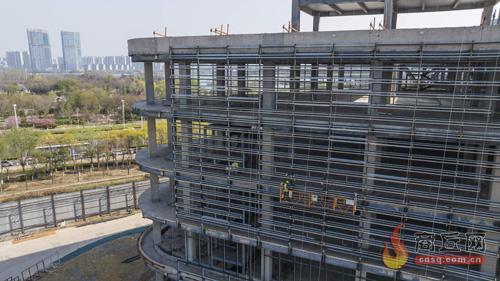 3月31日,施工人员在进行幕墙外立面施工。市“三馆一中心”项目位于宋城路与中州路交叉口西南角,总建筑面积约9.23万平方米,是我市的重点民生项目,建成后将进一步完善城市功能。 本报融媒体记者 崔坤 摄