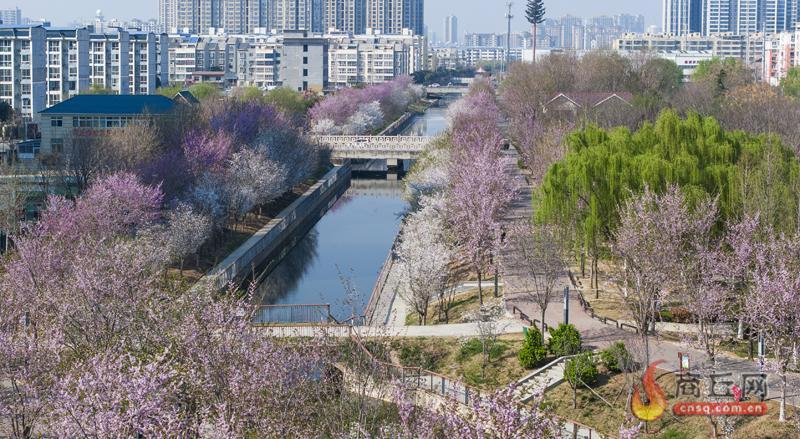 阳春三月,大街小巷仿佛被鲜花装点成了一个巨大的花园,无论是驾车还是步行,人们都能在忙碌的生活中感受到春天的气息。图为4月2日无人机拍摄的蔡河两侧鲜花盛开。 本报融媒体记者 崔 坤 摄