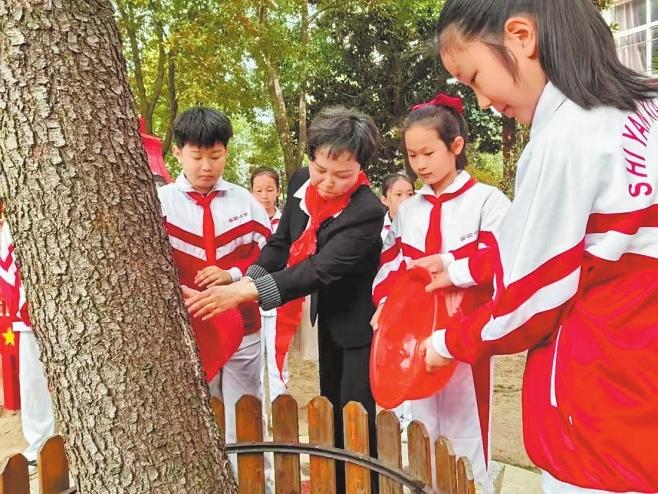 “英雄树”是学校一棵挺拔的雪松,是王焯冉从这所小学毕业时和同学们一起种下的。杨素香走到树前,轻轻抚摸着斑驳的树干,眼里闪烁着泪光。她将水轻轻浇在树根上,动情地说:“孩子们,你们是祖国的未来,长大后要像焯冉哥哥和革命先烈那样,做对国家、对社会有用的人……”