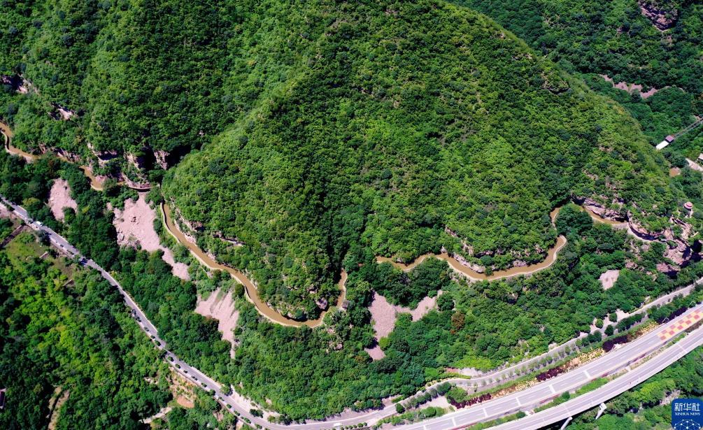 蜿蜒穿行于太行山的红旗渠总干渠(2023年6月9日摄)。新华社记者 郝源 摄