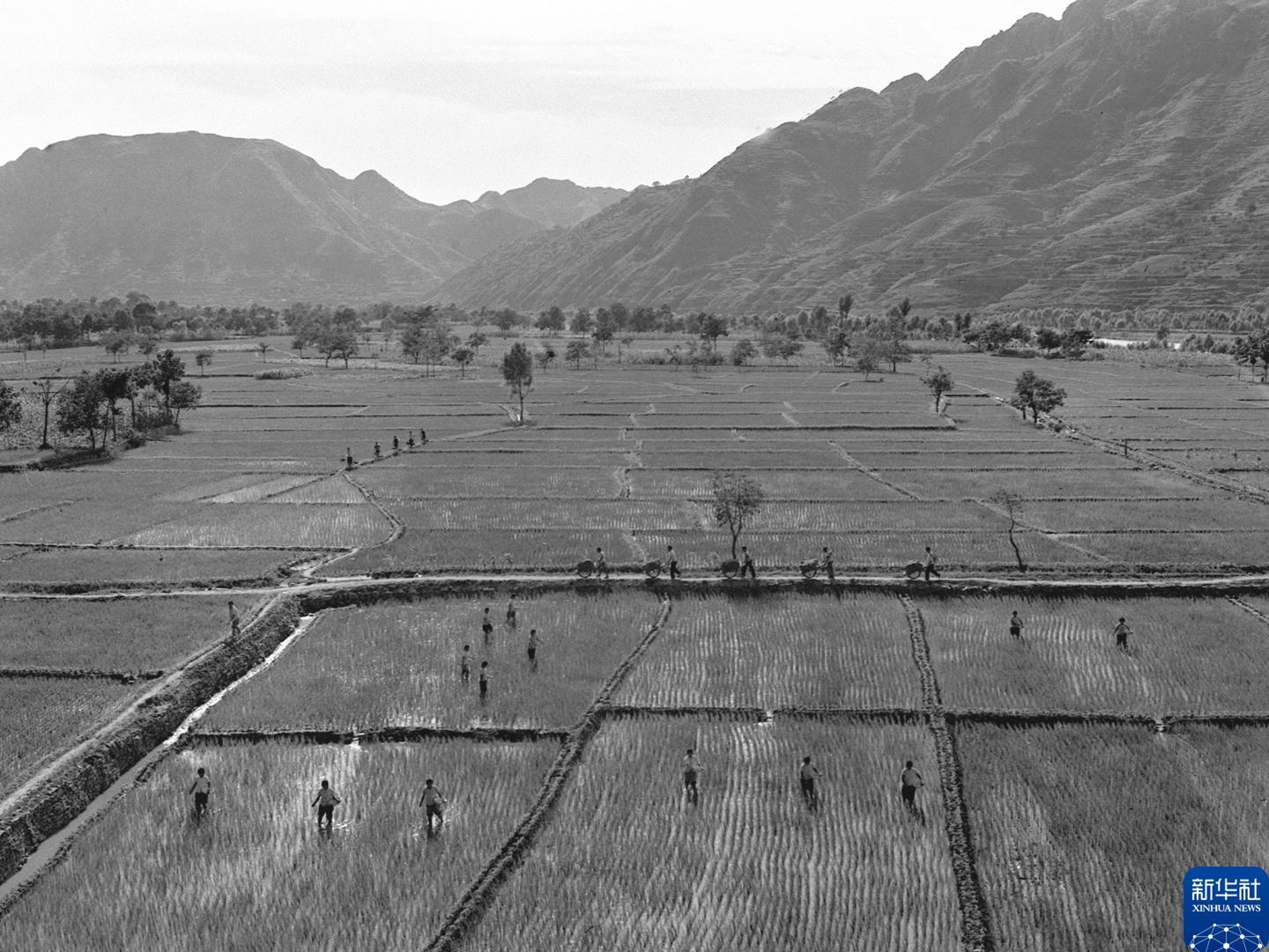 从红旗渠引来漳河水,使旱地变成水稻田(资料照片)。新华社发