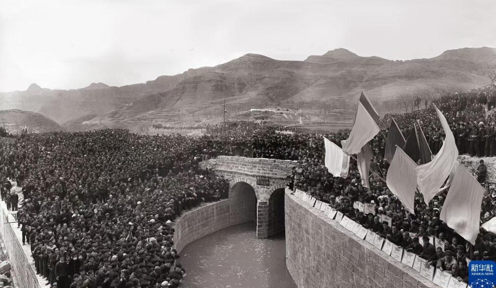 人们举行盛大集会,庆祝红旗渠竣工通水(资料照片)。新华社发