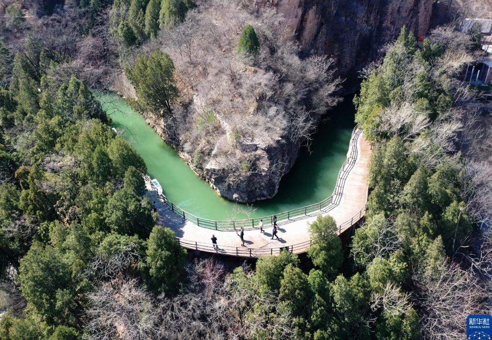 游客在红旗渠畔参观(2025年3月18日摄)。新华社记者 李嘉南 摄