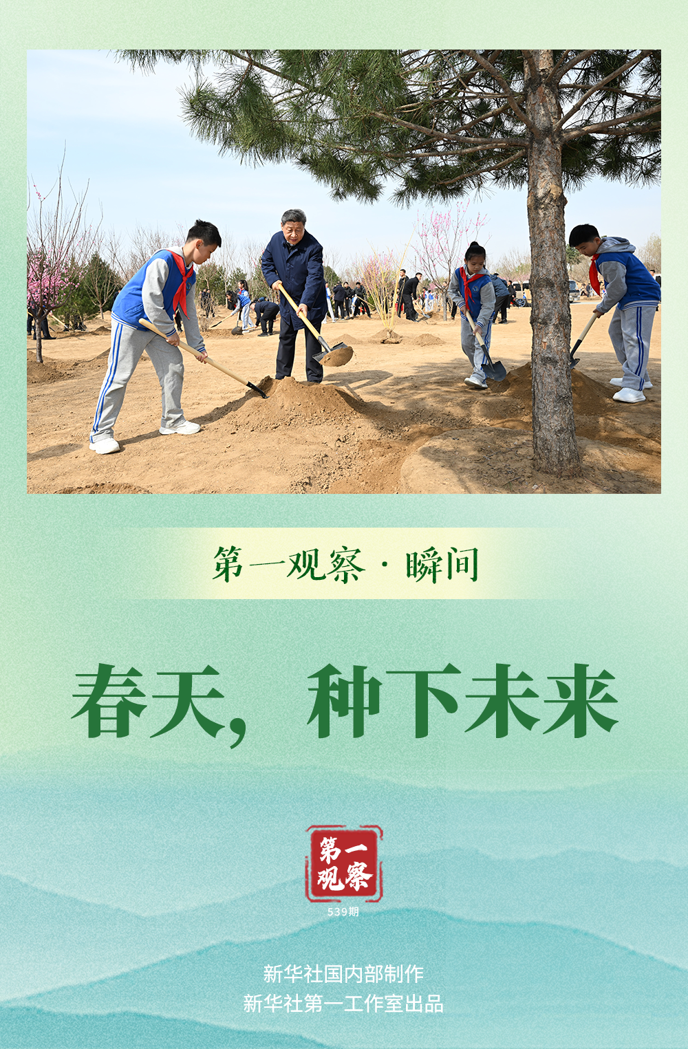 春和景明、惠风和畅,又是一年植树好时节。 4月3日,习近平总书记来到北京市丰台区永定河畔,在万物生长的时节,同干部群众一起种下绿色的希望。 新华社记者 谢环驰 摄 新华社记者的镜头记录下这样的温暖瞬间:总书记和少先队员们一起铲土造坑、培土围堰、提水浇灌。明媚春光下,一株株苗木错落有致,鲜艳的红领巾映衬着可爱的小脸蛋,一派热烈劳动场景。 2013年以来,习近平总书记连续13年参加首都义务植树,总会同小朋友们一起,一边劳动、一边关心大家的学习生活。 熟悉的叮咛犹在耳畔:“小心手啊”“慢一点,别铲到脚”“我们共同给树苗浇水,实际上也在为你们浇水”“从小就给它扶正了”…… 这一次,总书记又亲切地勉励孩子们:“美好生活都是靠劳动创造出来的,广大青少年要热爱劳动、热爱大自然,积极参加植树造林等公益活动,在劳动中锻炼身体、锤炼意志、增长知识,做到德智体美劳全面发展。” 殷殷寄语中,有对孩子们健康成长的悉心呵护,有对从小培养劳动意识的叮嘱,更有对祖国的“小树苗”们全面发展的期望,春风化雨、润人心田。 “我以后要多种树”“我会好好锻炼、健康成长”……小朋友们七嘴八舌,诉说着和习爷爷一起参加植树的感受。绿色的种子播撒在心中,成才的理想在心底发芽。 新华社记者 谢环驰 摄 古语云:十年树木,百年树人。树木和树人,育苗和育人,蕴含着对时间的深刻把握与理解。 一棵树苗长成参天大树,需要从小培土施肥,方能长得挺拔直立,这是自然界的规律。一个人要成为栋梁之才,也需从小教育,“扣好人生第一粒扣子”,这是社会的规律。 “孩子教育,跟植树一样,一开始就要竖正,否则就会长歪。”总书记的话,饱含着对祖国未来的希冀。 上个月,全国两会期间,在政协联组会上,总书记一番关于教育的讲话,着眼深远、掷地有声。 “教育必须紧紧围绕立德树人这个根本任务,坚持德育为先,把德育贯穿于智育、体育、美育、劳动教育全过程”“从小树立理想,坚定信念信心,中国特色社会主义事业就有了可靠的接班人”…… 教育,党之大计、国之大计。 新华社记者 殷博古 摄 今天种下新绿,小小树苗将长成参天大树、连片成林,祖国大地绿意盎然、生机勃发。今天播撒希望,孩子们终将成为社会发展的栋梁之才,强国建设、民族复兴更有接续奋斗的力量。 2021年植树结束后,孩子们围上来依依不舍。总书记笑着望着一双双满怀憧憬的眼睛,亲切嘱咐道:“我们现在到本世纪中叶,建成一个中国特色的社会主义强国,三十年。你们现在十岁,到时候四十岁。国家栋梁啊!”掌声四起。 策划:张晓松 主编:朱基钗 主笔:严赋憬、赵旭 视觉:包昱涵 新华社国内部制作 新华社第一工作室出品