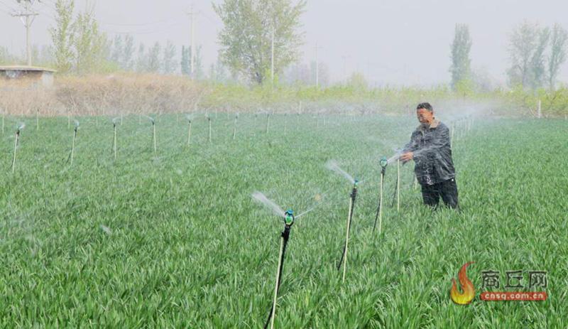 4月8日,宁陵县逻岗镇符楼村农民在高标准农田里,用微灌给麦田喷水。眼下,天气干旱,正是果树开花、小麦生长的关键时期,该县农民积极行动,抓好农业管理。