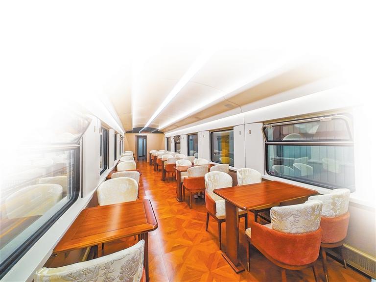 “中原铁道·大河之南号”特色旅游列车餐车车厢。崔轩豪 摄