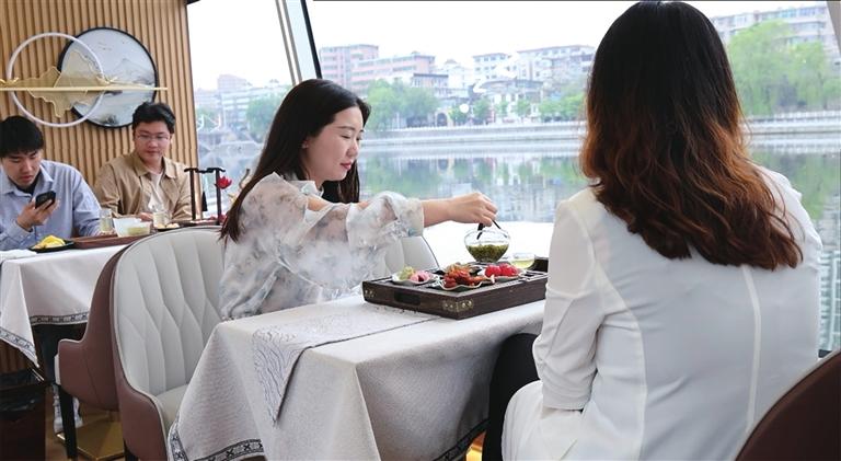 信阳文旅集团华旅露营公司副总经理常书铭告诉记者游船消费实行一票制,“游船运营后,干果水果、蛋糕甜点、毛尖茶、咖啡都包含在船票里”。