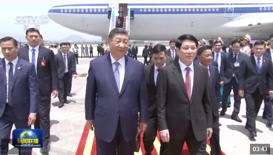 当地时间4月14日中午,中共中央总书记、国家主席习近平乘专机抵达河内,应越南共产党中央委员会总书记苏林、越南社会主义共和国主席梁强邀请,对越南进行国事访问。