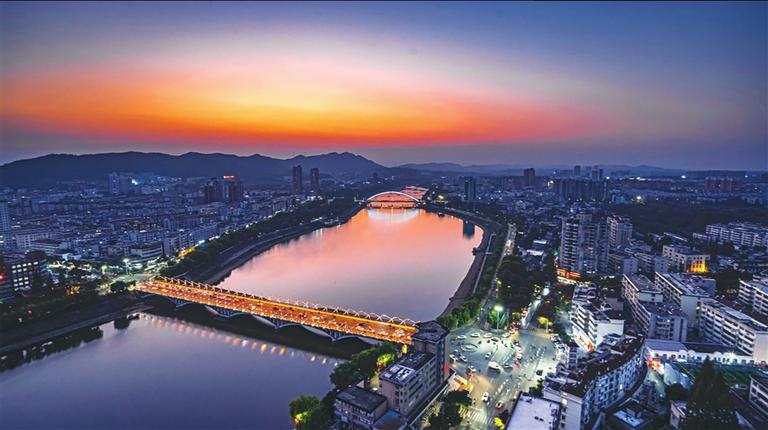 暮色降临,浉河两岸华灯初上 受访者供图