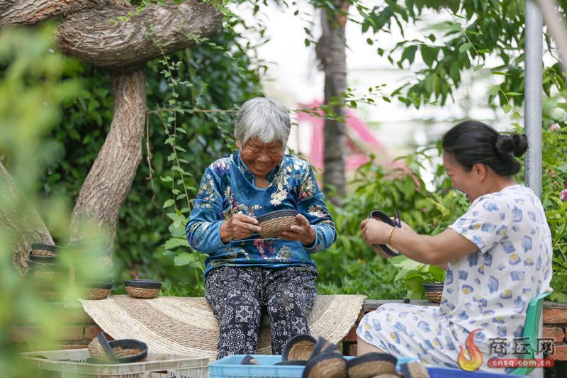 睢县董店街道刘阁村一农户家中,村民正在制作草编工艺品。 徐泽源 摄