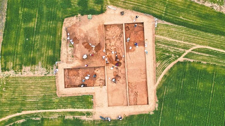 麦田里的裴李岗遗址(4月2日摄)。