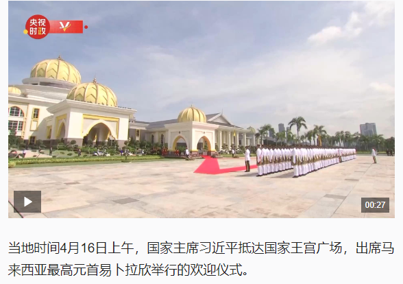 独家视频丨习近平抵达马来西亚国家王宫广场出席欢迎仪式
