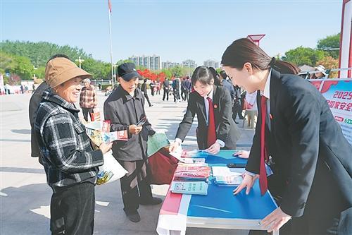 4月15日,民权县人民法院组织干警在民生广场开展全民国家安全教育普法宣传活动,向群众宣讲国家安全法、反间谍法、网络安全法等法律知识,发放《国家安全教育手册》《全民国家安全教育日国家安全法律知识问答》等宣传材料400多份,接受群众法律咨询40多人次。 本报融媒体记者 梁晓晨 通讯员 李 宁 摄