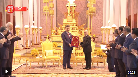 独家视频丨习近平接受“柬埔寨王国民族独立大项链级勋章”